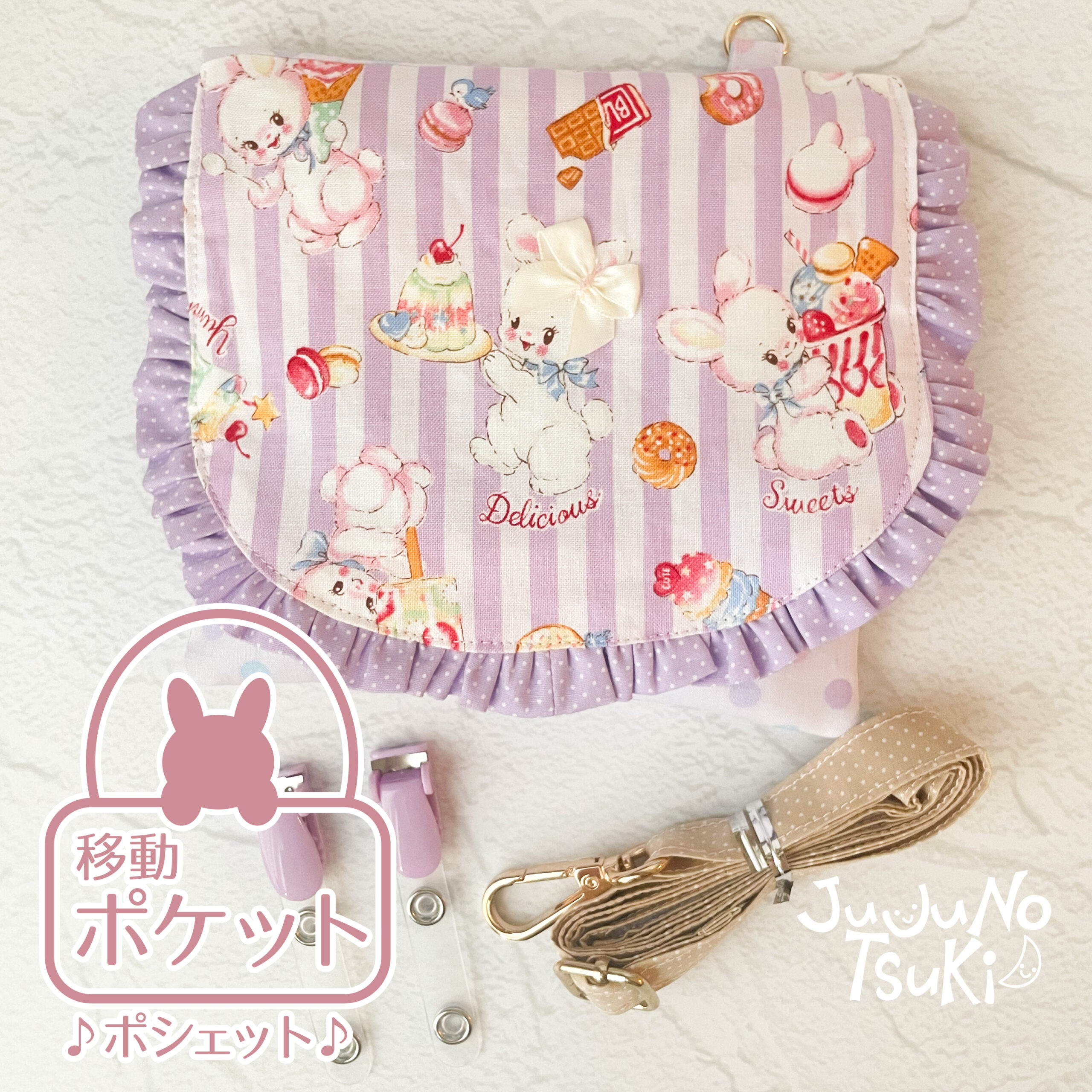 移動ポケット「うさぎ柄ストライプ」をminneにて販売中です。